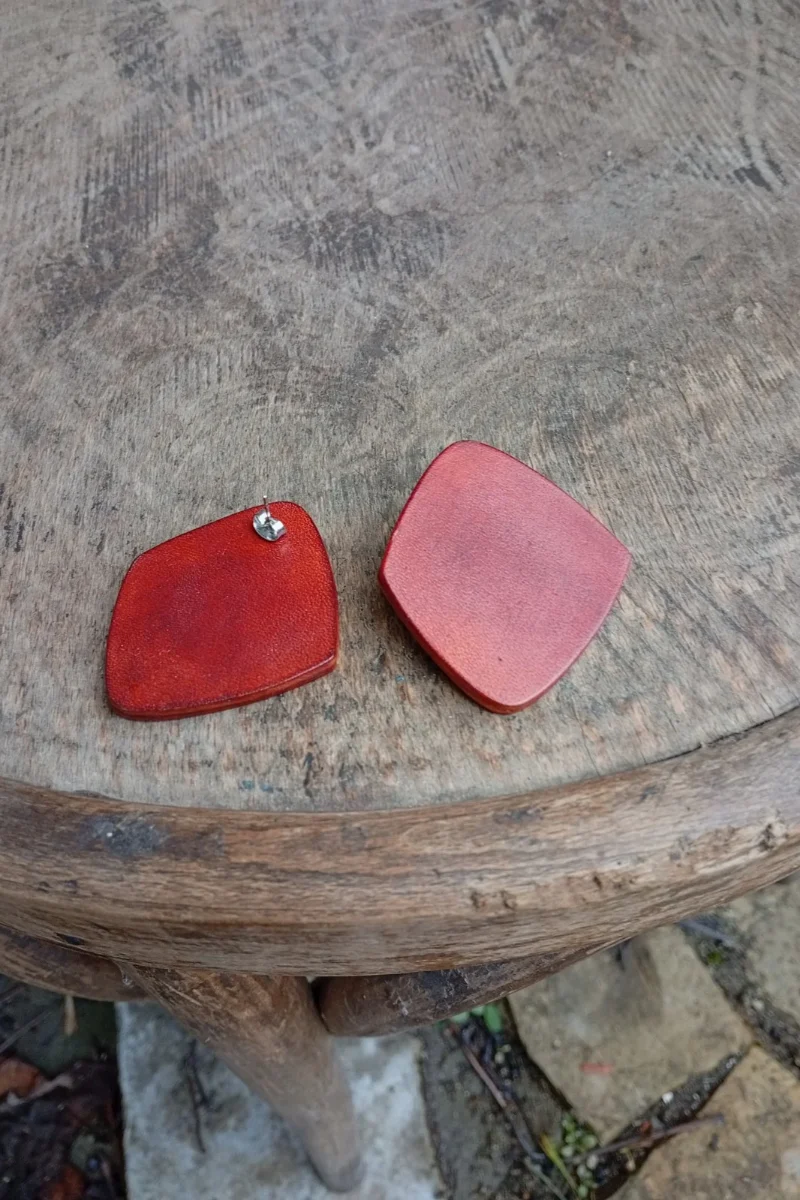 Обеци от кожа. Щифтът е от медицинска стомана. Размерът им е 5 /4.5 см.